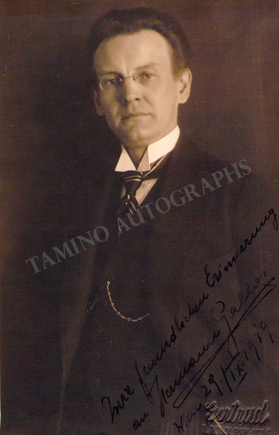 French tenor (1876-1950), who started his career well into his 30's after working in the French railways. Franz developed a very successful international career thanks to his beautiful voice and impressive stage appearance. Signed photo, shown in title role of Wagner's Parsifal, a role the he premiered in Paris in 1914. Photo by L. Poosey, Paris. Size is 6.75 x 9.25 inches, in excellent condition.