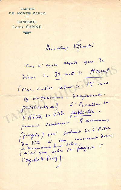 Italian mezzo-soprano (1878-?). Autograph note signed on the stationary of the Grand Hotel Savoy, Florence, 1 page of a folded 4-page document, written in Italian, sold untranslated. Size of each page is 5.75 x 7.25 inches, in excellent condition.