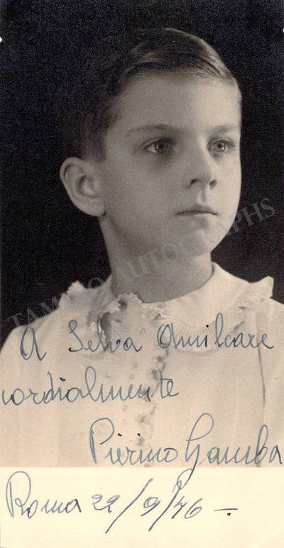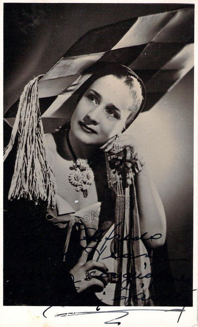 Italian tenor (1906-1993), signed photo, shown as Vladimir Igorevitch in Prince Igor at La Scala. Inscribed and dated in 1940. Photo by M. Camuzzi, Milan. Size is 4 x 5.75 inches with some smudges near top left of photo but not affecting the signature. Otherwise in excellent condition.