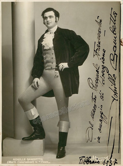 Signed photo of the italian tenor (1908-?), shown as Cavaradossi in Tosca, 4 x 6 inches, inscribed, dated in 1938, in excellent condition