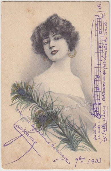 French tenor (1876-1950), signed photo postcard, shown as Julien in Gustave Charpentier's Louise. Photo by Gerschel, Paris. Size is 3.6 x 5.6 inches with some fraying at edges but otherwise in excellent condition.