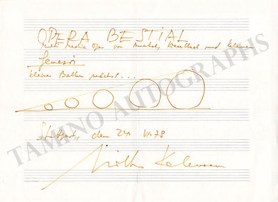 American conductor (1890-1975), composer, and educator. 2-bar autograph music quote signed by him on an album page. Size is 6 x 4.1 inches, in excellent condition.