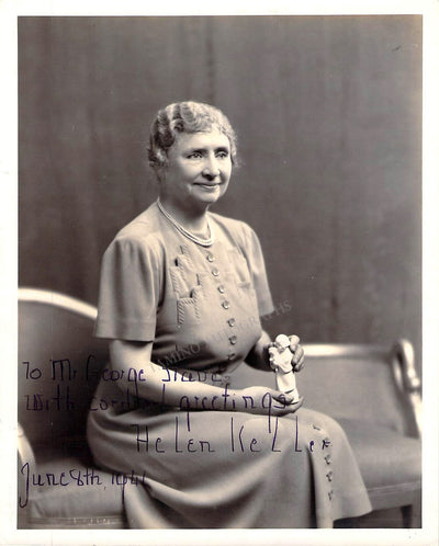 American soprano (dates unknown) who starred at the San Francisco Opera and other major American theatres in the 1930's and 40's. Attractive large signed photo, shown in role, inscribed and dated in 1940. Size is 8 x 10 inches with some stains at top and bottom left edges of photo as well as slight paper loss on top and bottom right edges, not affecting the image and signature. Otherwise in very good condition.