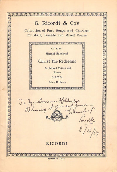Italian composer (1908-1980) and musical administrator, Director of Teatro Comunale di Bologna between 1946 and 1950. Nice sepia photo postcard signed and inscribed by him. Size is 3.6 x 5.75 inches, in excellent condition.