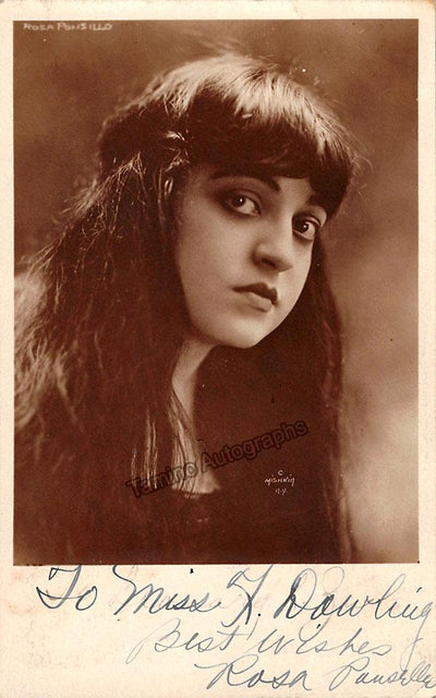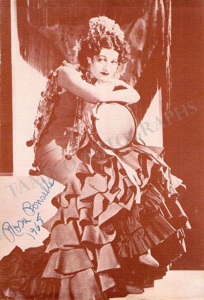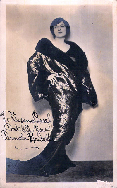 Spanish opera and zarzuela singer (1898-1931), made her opera debut at the age of 14. Signed photo postcard, shown in role, inscribed and dated in Rosario, Argentina in 1922. Size is 5.5 x 3.5 inches, in excellent condition. Rare!