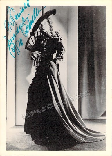 Spanish soprano (1898-1931) who died very young at the top of her career. Signed photo, shown in role, inscribed. Photo size is 5 x 3 inches, mounted on a hard cardboard that is 7.25 x 5.25 inches.