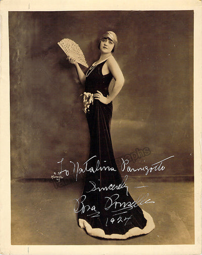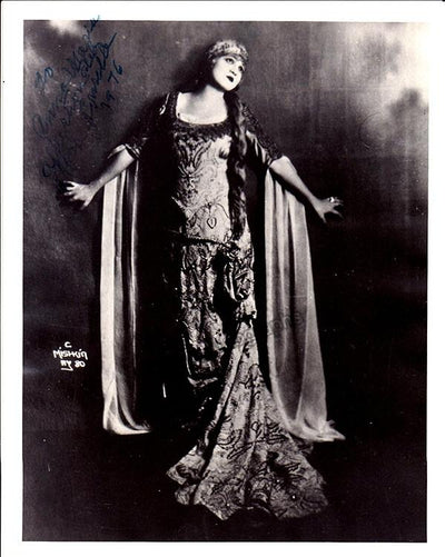 American soprano (1876-1943), signed photo, shown most likely in role, inscribed and dated in 1919. Photo by Mishkin, New York. Size is 7 x 9 inches, paper loss and cut on top right, otherwise in excellent condition. Priced accordingly.