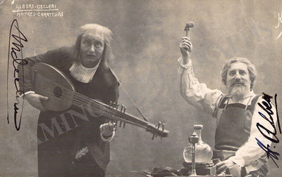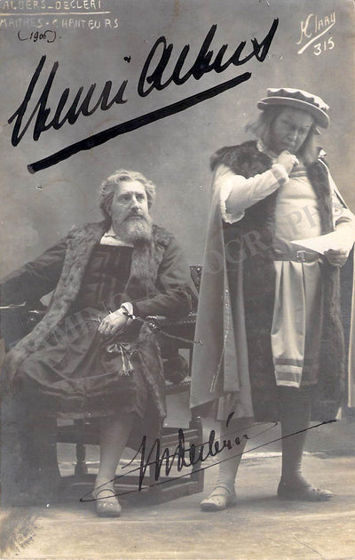 Dutch-born French baritone (1866-1926) and French baritone (1873-1957), double signed photograph, shown as Hans Sachs and Beckmesser in Wagner's Die Meistersinger. Photo by Klary. Size is 3.5 x 5.5 inches, in excellent condition.
