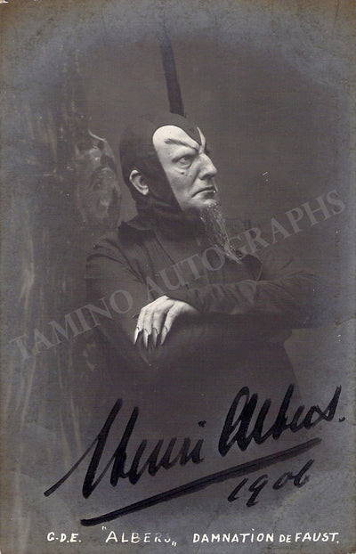 Dutch-born French baritone (1866-1926). Nice black-and-white photograph signed by him in 1906, shown in Berlioz' opera La Damnation de Faust.  Size is 3.5 x 5.4 inches, silvering around borders, in very good condition.
