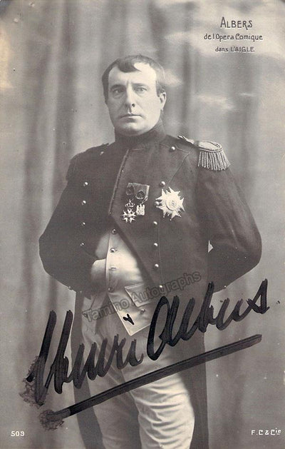 Dutch-born French baritone (1866-1926), signed photo postcard, shown in Le Chemineau. Also hand-written and signed on verso. Blind stamp on front by photographer Boissonnas, Marseille. Size is 3.5 x 5.5 inches.