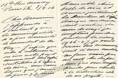 Dutch-born French baritone (1866-1926). Autograph letter signed, dated in Paris in 1926, 3 pages, written in French, sold untranslated. Each page is 5.25 x 7.25 inches, in excellent condition.