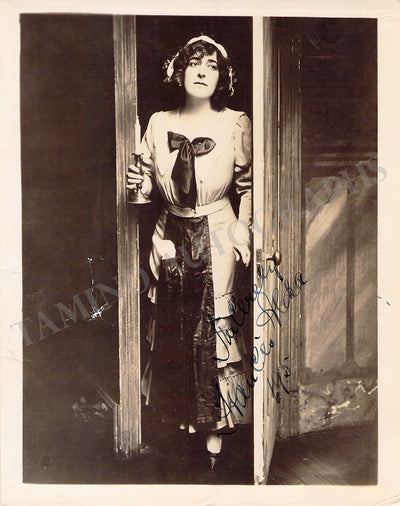 Italian soprano (1899-?), signed postcard photograph, shown in role. Stamped on verso by photographer Willem Coret, The Hague. Size is 3.25 x 5.25 inches, some silvering as well as a crease and slight paper loss on bottom right, otherwise in good condition.