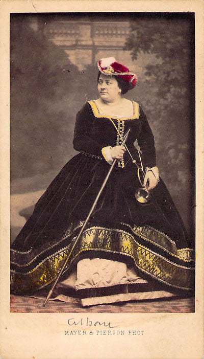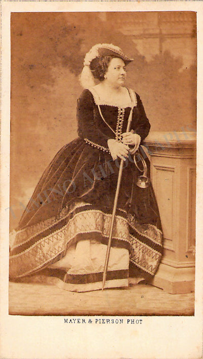 Italian contralto (1826-1894); considered one of the greatest contraltos in operatic history. Fine vintage carte-de-visite (CDV) with her portrait by photographer Mayer & Pierson (Paris), shown probably in role. Size is 2.3 x 4.1 inches, in overall very good condition (see scan provided).
