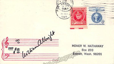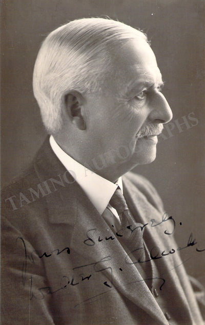 English organist (1861-1947), composer, and teacher who held prominent positions as an organist and played at the coronations of three monarchs. Set of 3 autograph items as follows: A. Fine black-and-white photograph signed by him with a short sentiment. Size is 3.3 x 5.3 inches, in excellent condition. B. Autograph note signed by him in 1938. Size is 4.3 x 6.9 inches, in excellent condition. C. Album page signed by him with a short sentiment. Size is 5.75 x 3.8 inches, in excellent condition. D. 67-page autobiography in hard covers along with a typed letter signed by his daughter. Size is 7.1 x 8.8 inches, in excellent condition.