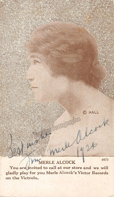 American contralto (1890-1975), signed promo photo postcard, shown as herself, dated in 1926. Size is 3.1 x 5.5 inches, in excellent condition.