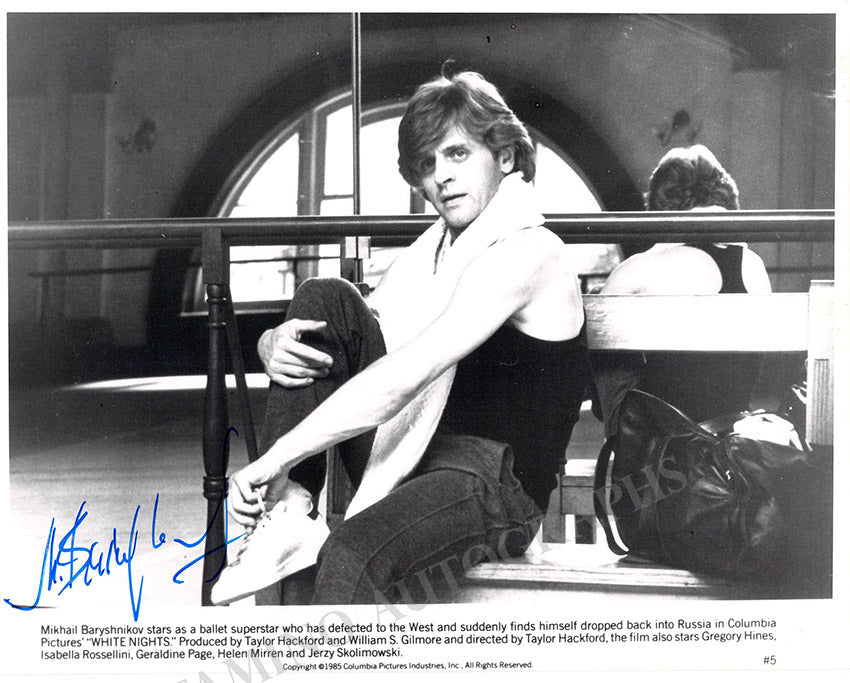Black-and-white movie-still promo photograph of the film White Nights (1985) signed by him. Size is 10 x 8 inches, in excellent condition.