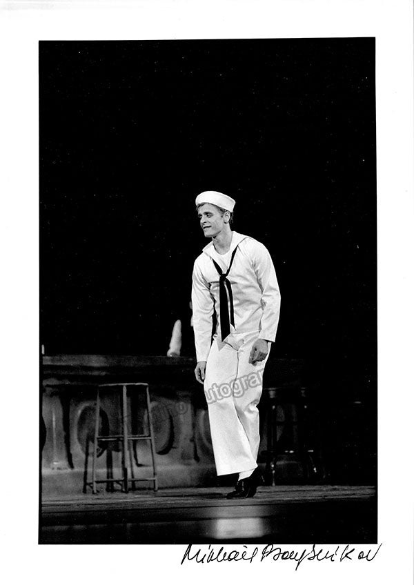 Beautiful black-and-white photograph signed by him, shown in a 1979 production of Fancy Free. Size is 8.25 x 11.7 inches, in excellent condition.