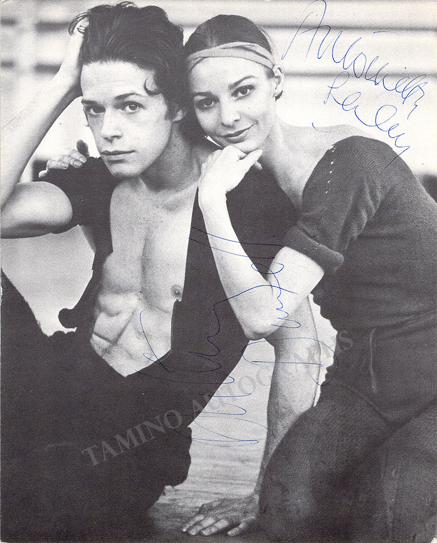 Gorgeous black-and-white half-tone photograph (probably from a program or book) signed by both artists, shown in a rehearsal. Size is 7.9 x 9.9 inches, in excellent condition.