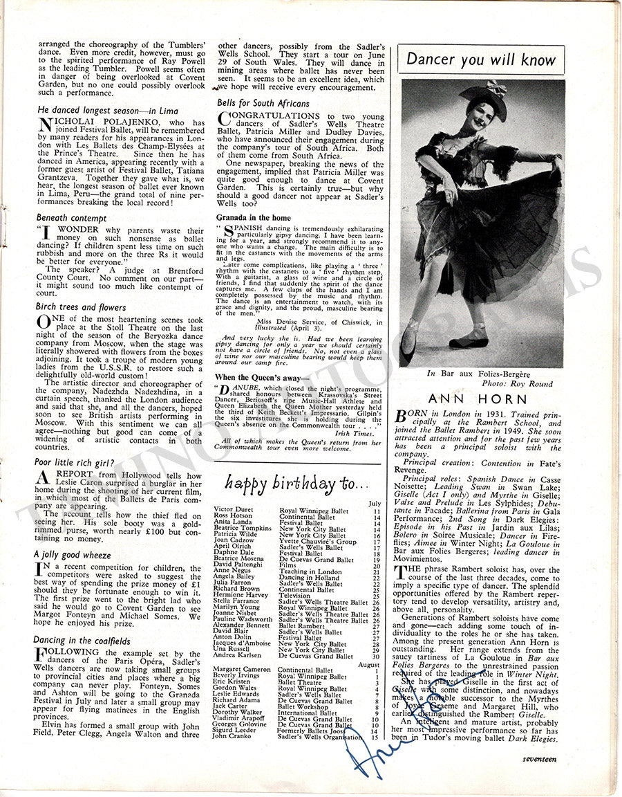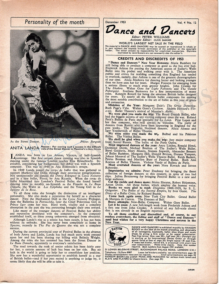 Beautiful collection of issues of "Dance and Dancers" Magazine signed by different ballet dancers.