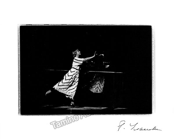 Beautiful black-and-white photograph signed by her, shown in performance; sticker on verso by photographer William Struhs (Charleston, S.C.). Size is 9.9 x 7.9 inches, in excellent condition.