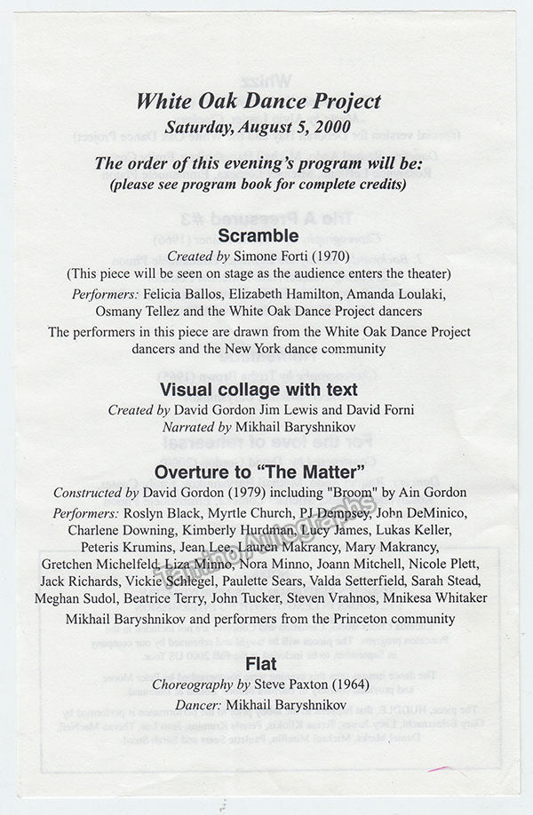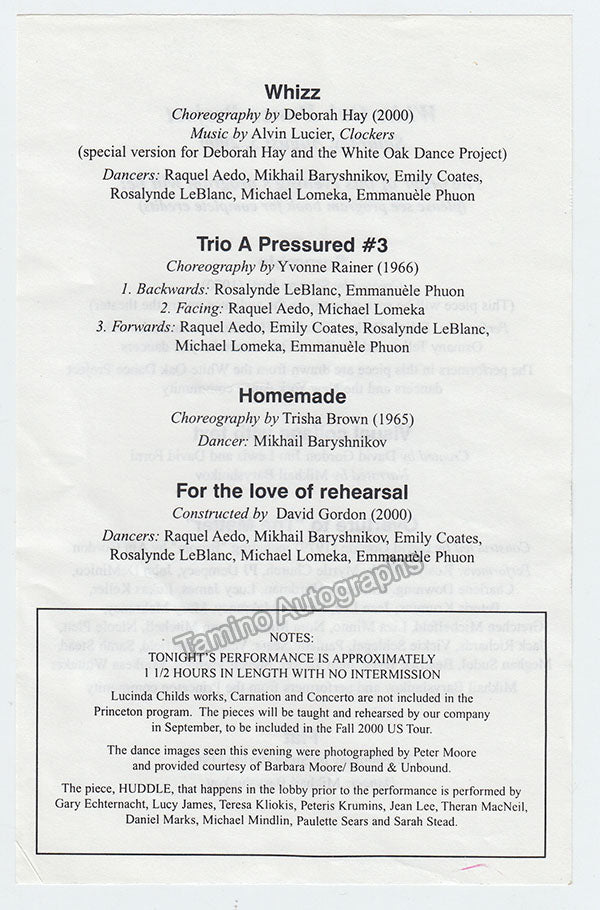 Mikhail Baryshnikov Deborah Hay Autographs Signed Program 2000