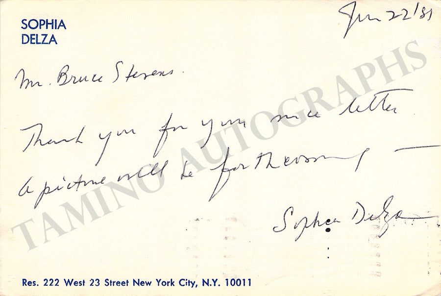 Delza, Sophia - Signed Card 1951 Delza, Sophia - Signed Card 1951