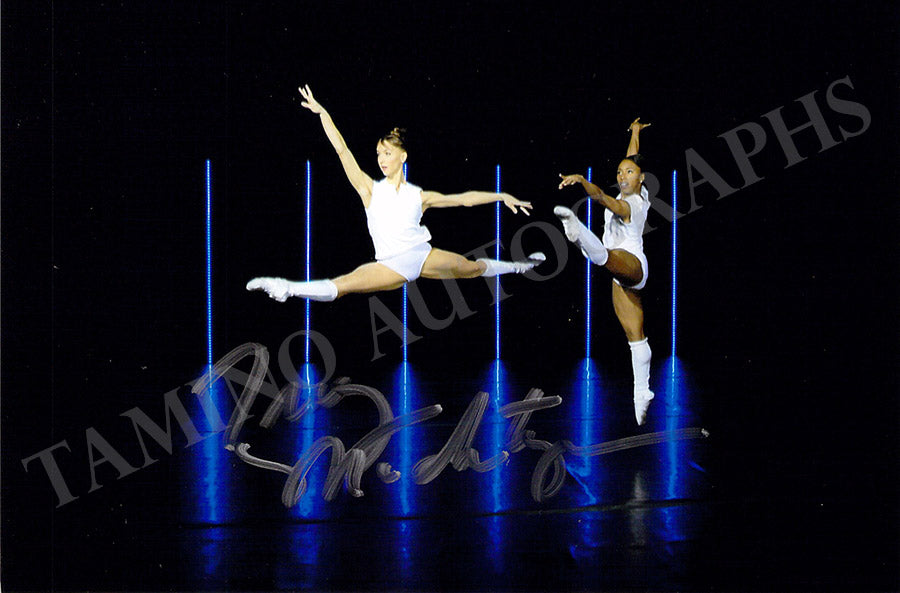 Fine color photograph of two female dancers in performance signed by him. Size is 5.9 x 4 inches, in excellent condition.