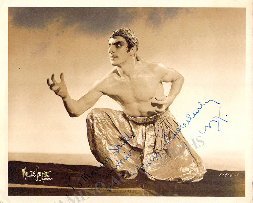 Wonderful black-and-white photograph of the dancer by Maurice Seymour (Chicago), signed and inscribed by Yurek, dated by him in 1937, shown young.  Size is 9.9 x 7.9 inches, in excellent condition.