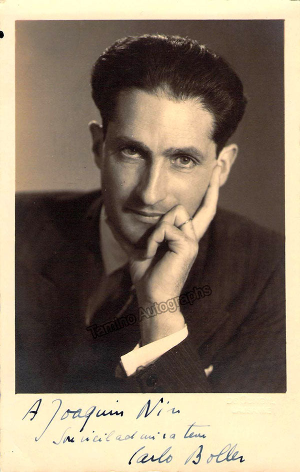 Fine black-and-white photo postcard signed and inscribed by him to Joaquin Nim with a short sentiment. Size is 3.5 x 5.5 inches, jagged edges, in excellent condition.