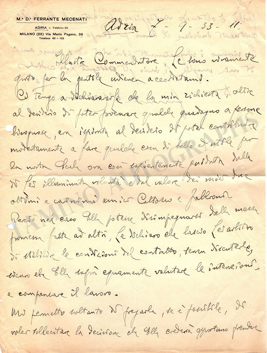 Mecenati, Ferrante - Autograph Letter Signed 1933
