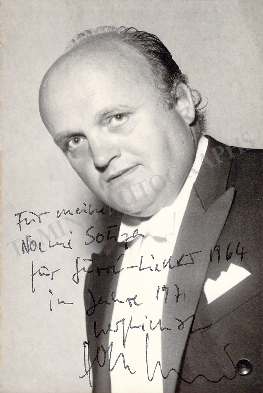 Black-and-white photograph signed and inscribed by him in 1970; ink-stamped on verso by photographer Wilhelm Rauf. Size is 5 x 7 inches, in excellent condition.
