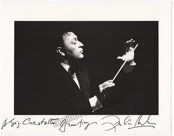 Larger size color Cibachrome* print signed by the star conductor, shown in rehearsal in Philadelphia, 1981. Photo is also signed on verso by photographer J. Winigrad in Philadelphia, 1981.