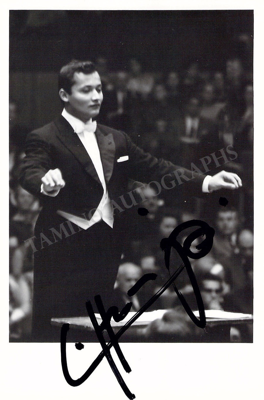 Nice photograph signed by him, shown young conducting; ink-stamped on verso by photographer Guy Verwimp, Ambers. Size is 3.5 x 5.3 inches, in excellent condition.