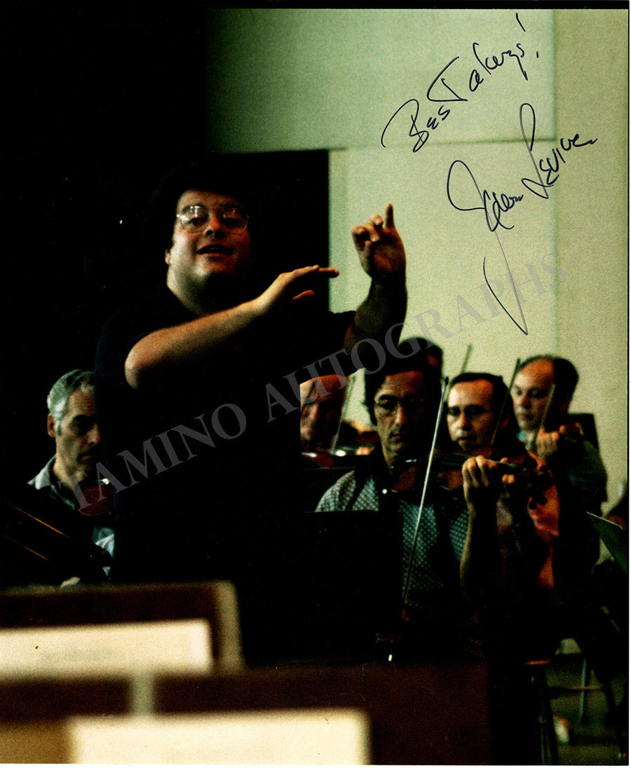 Larger size color Cibachrome* print signed by the star conductor with a short sentiment, shown in rehearsal in Saratoga, 1974; also signed on verso by photographer Allen Winigrad.  Size is 9.4 x 11.4 inches, mounting traces on verso, otherwise in excellent condition.
