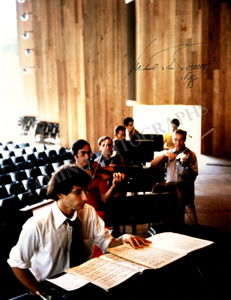 Larger size color Cibachrome* print signed and dated by the conductor in 1978, shown in rehearsal in Philadelphia that same year; also signed on verso by photographer Allen Winigrad.  Size is 10.9 x 14 inches, mounting traces on verso, otherwise in excellent condition.