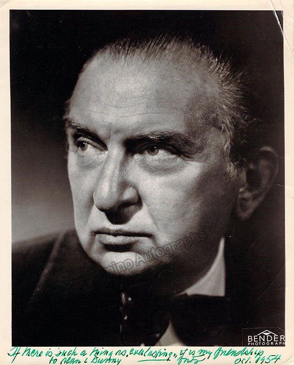 Fine black-and-white photograph inscribed and signed by him only as 'Fritz' with a short sentiment dated 1954. Size is 8 x 10 inches, some creases, in overall very good condition.