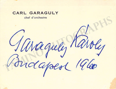His printed business card signed by him and dated in Budapest, 1960. Size is 3.75 x 2.8 inches, in excellent condition.