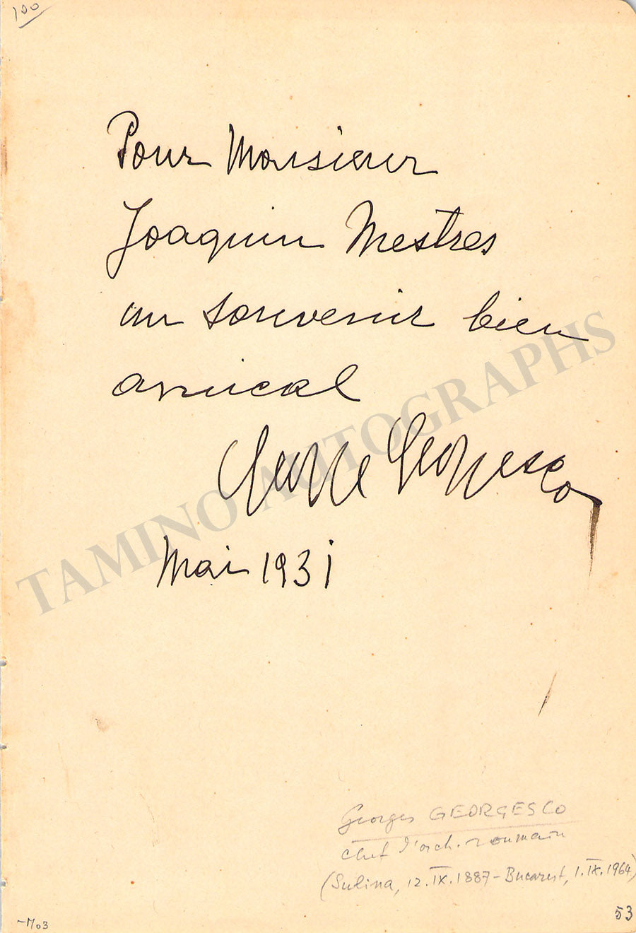 George Georgescu Autograph Signed Album Page 1931