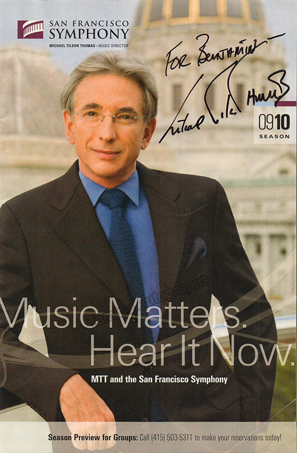 Magazine of the San Francisco Symphony for the 2009/2010 season signed and inscribed by him on the cover. Full magazine, size is 7.25 x 11 inches, in excellent condition.