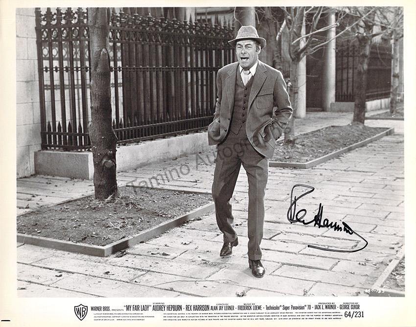 Fine black-and-white promo movie-still photograph signed by him, shown in the film version of 'My Fair Lady' (1964).