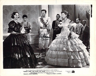 Nice black-and-white movie still photograph of the film 'Anna and the King of Siam' (1946) signed by him. Size is 10.1 x 8.2 inches, minor cracks, some creases, in good condition.
