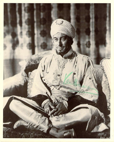 Fantastic black-and-white photograph signed by him with green ink, shown in the film 'King Richard and The Crusaders' (1954). Size is 8 x 9.9 inches, in excellent condition.