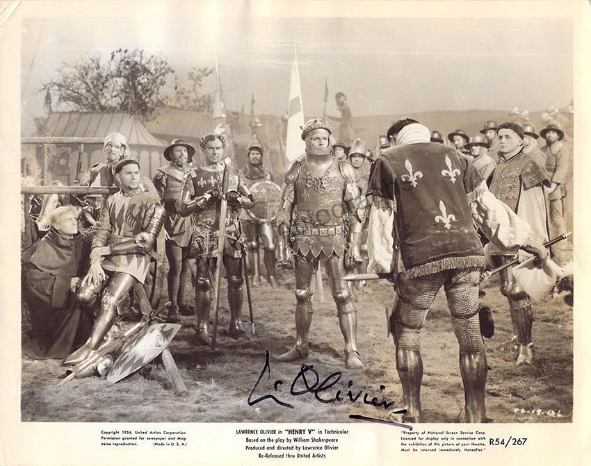 Fantastic movie still photograph of the 1954 Film 'Henry the Fifth', signed by him.