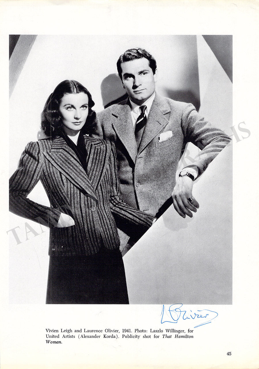 Fine black-and-white halt-tone Advertisement signed by him, shown next to Vivian Leigh. Size is 7.75 x 11.2 inches, in excellent condition.