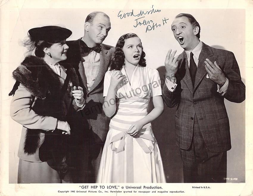 Beautiful promo movie still photograph from the film "Get Hep to Love" (1942), signed by him with a short sentiment.  Size is 10.25 x 8 inches, creases, small pinhole, in good condition.