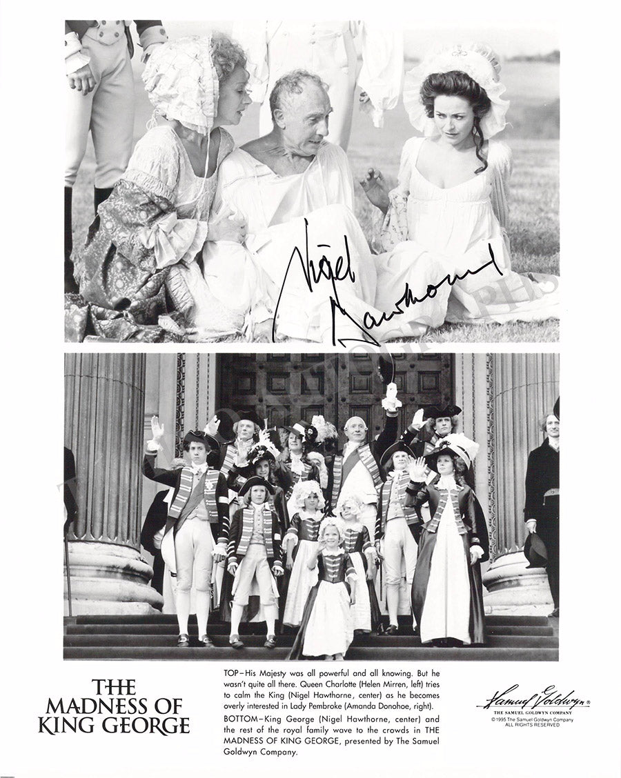 Beautiful black-and-white promo photograph signed by him, shown in the film "The Madness of King George" (1994). Size is 7.9 x 10 inches, in excellent condition.
