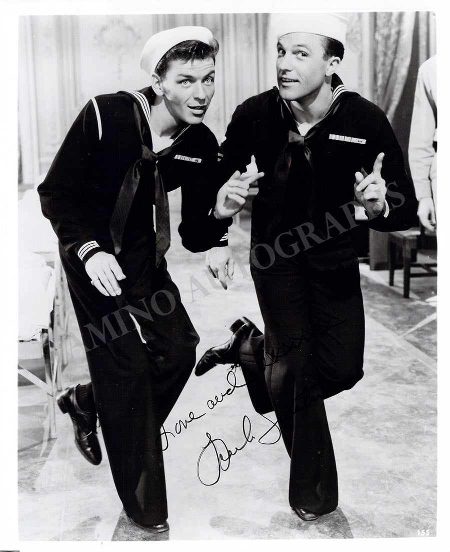 Black-and-white photograph of the musical film "On the Town" (1949) signed by him with a short sentiment, shown next to Gene Kelly. Size is 7.9 x 9.75 inches, in excellent condition.