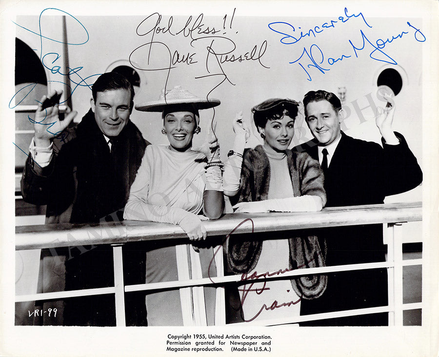 Fine black-and-white promo movie-still photograph of the film "Gentlemen Barry Brunettes" (1955) signed by both artists plus Alan Young and Jeanne Crain. Size is 10 x 8 inches, in excellent condition.