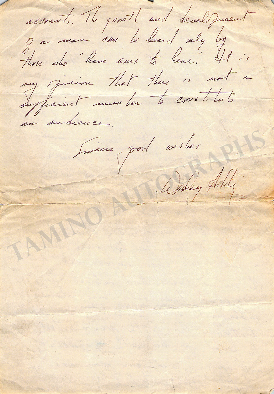Addy, Wesley - Autograph Letter Signed 1950 Addy, Wesley - Autograph Letter Signed 1950