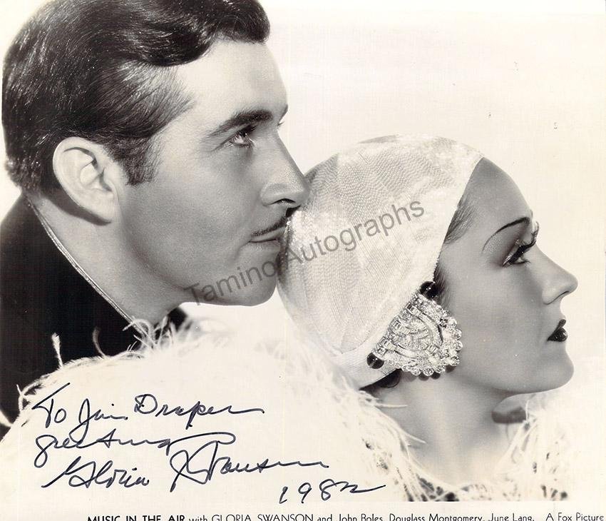 Beautiful photograph shown in the 1934 movie 'Music in the Air' shown next to John Boles, signed by her in 1982. Size is 8.4 x 7.25 inches (trimmed from a larger size), glue residues on verso, in very good condition.